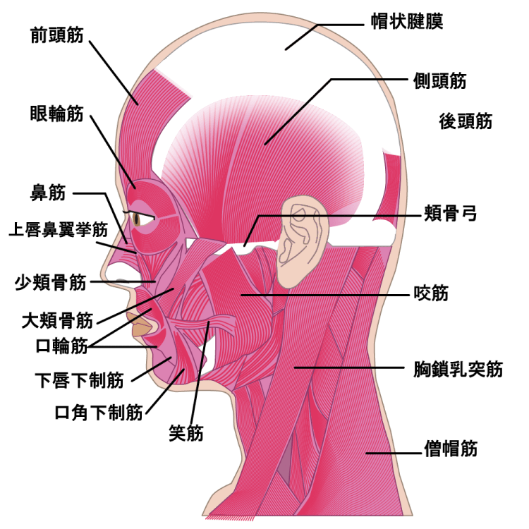皆さんが普段の日常生活でよく使う筋肉に、前頭筋や側頭筋などの頭の筋肉。